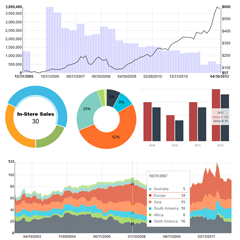 Analyzed data can be visualized in charts or can, on request, be used in GIS or other mapping solutions. Once created, the charts can be shared between users, even across the entire organization- this way, other users will be able to embed them in their own dashboards (or in other materials) and can even export them for print.